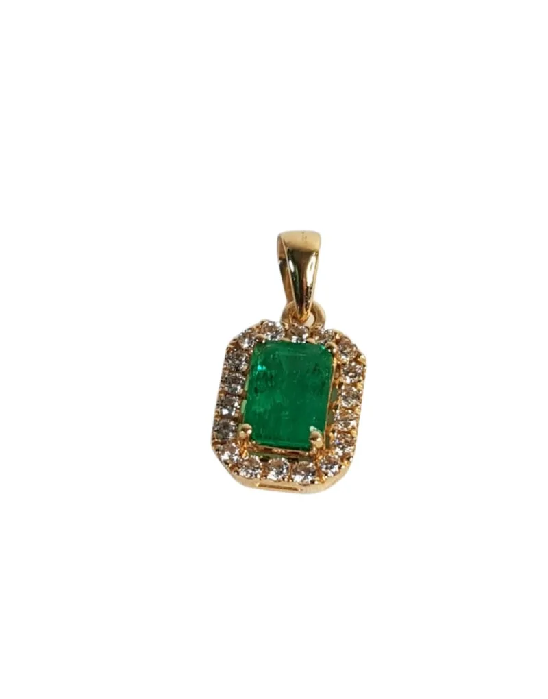 Realza tu distinción con este exclusivo dije de oro amarillo 18K, engastado con una majestuosa esmeralda de Muzo en Colombia en talla esmeralda, rodeada por un halo de diamantes que intensifican su brillo y elegancia. Su diseño sofisticado combina la riqueza natural de las esmeraldas colombianas con la maestría de la alta joyería, convirtiéndolo en la elección perfecta para quienes buscan exclusividad y refinamiento. Una joya de lujo que añade un toque de distinción a cualquier ocasión. El esplendor de una pieza única 💎✨