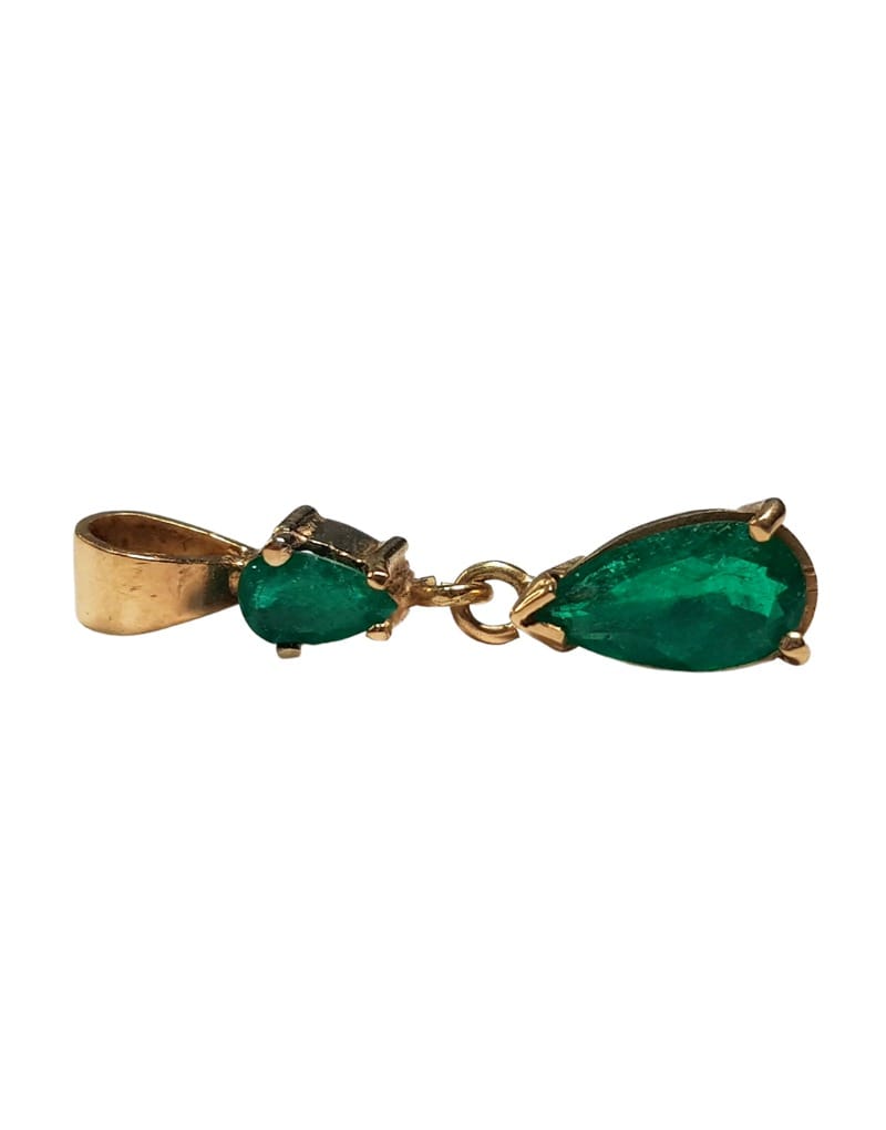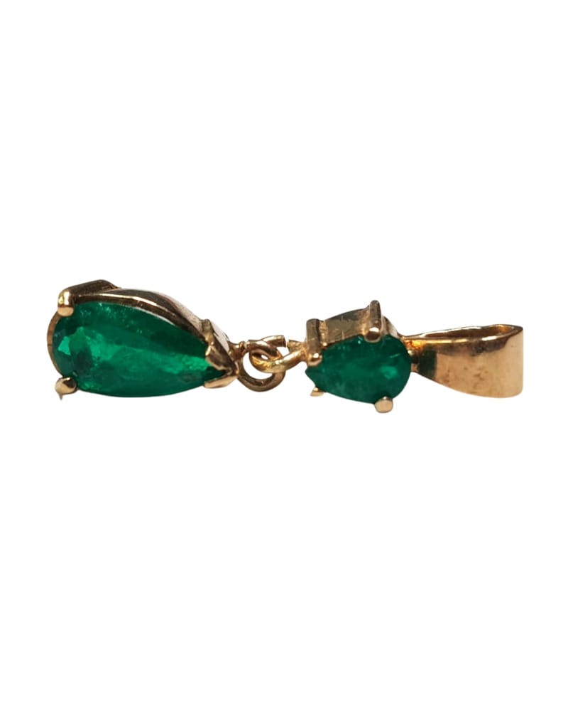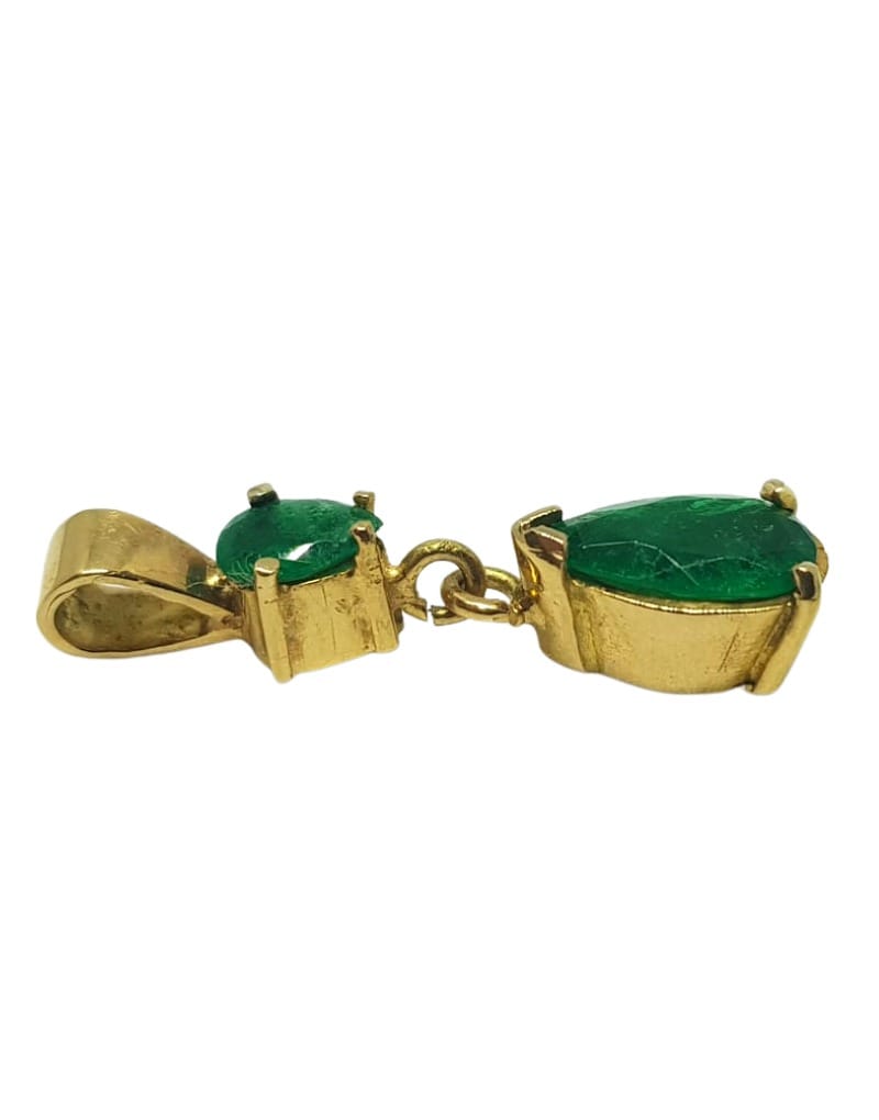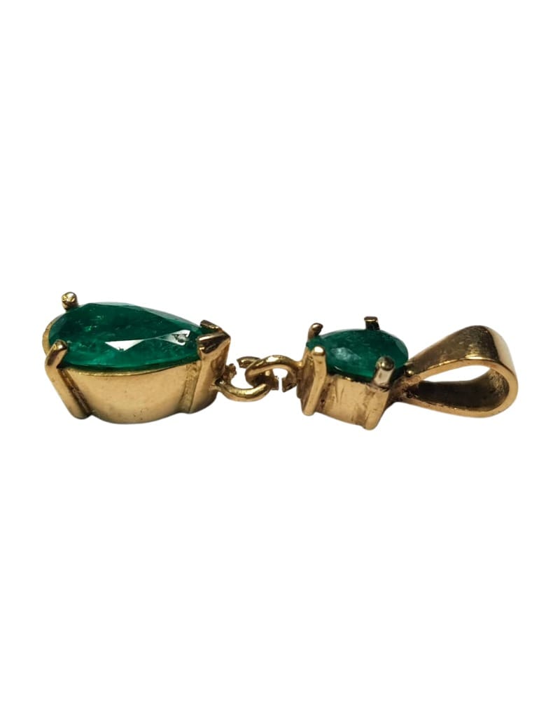 Descubre la belleza incomparable de este elegante dije de oro amarillo 18K, diseñado con dos exquisitas esmeraldas de Muzo – Colombia en talla pera y corazón. Su estructura articulada permite un movimiento sutil y refinado, potenciando el brillo natural de las esmeraldas y su distintivo color verde intenso propio de las esmeraldas de Muzo. Un diseño sofisticado que combina la exclusividad de las gemas colombianas con la maestría de la alta joyería. Una joya perfecta para quienes buscan distinción, lujo y autenticidad.  💎✨